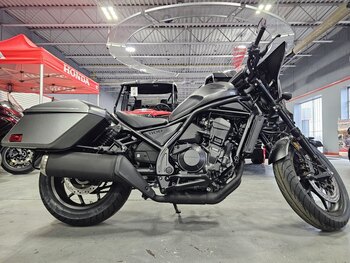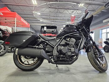 Set Up for TouringSetting it apart from the Rebel 1100, the Rebel 1100 Touring comes standard with a large headlight cowl and windscreen. The Touring model also comes with saddlebags which are perfect for packing for a weekend getaway. |
