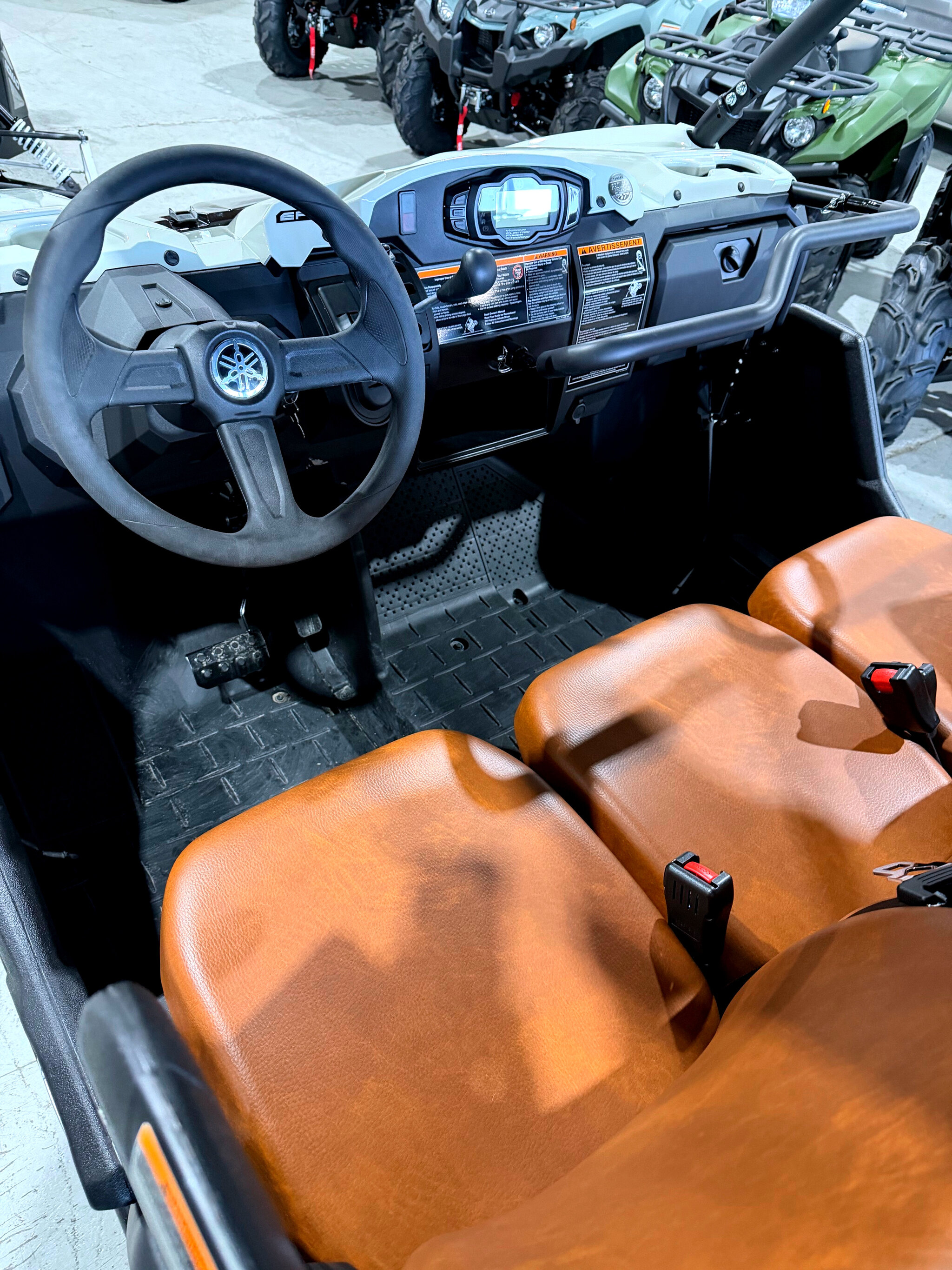 • Roomy 3-person seating with 3-point seat belts & passenger hand holds.