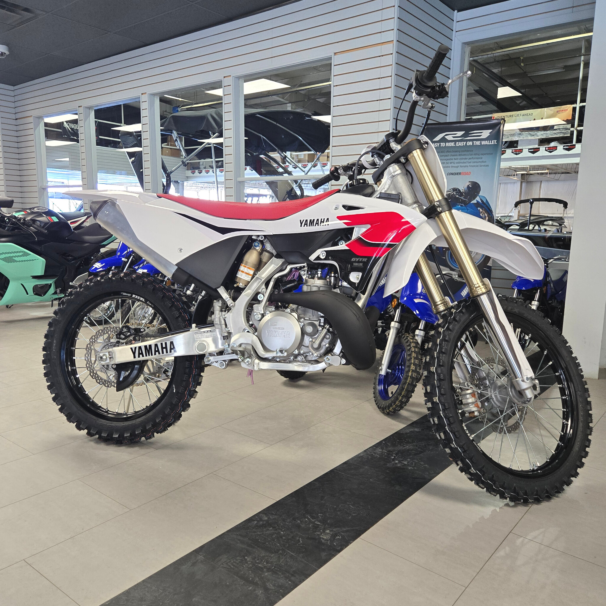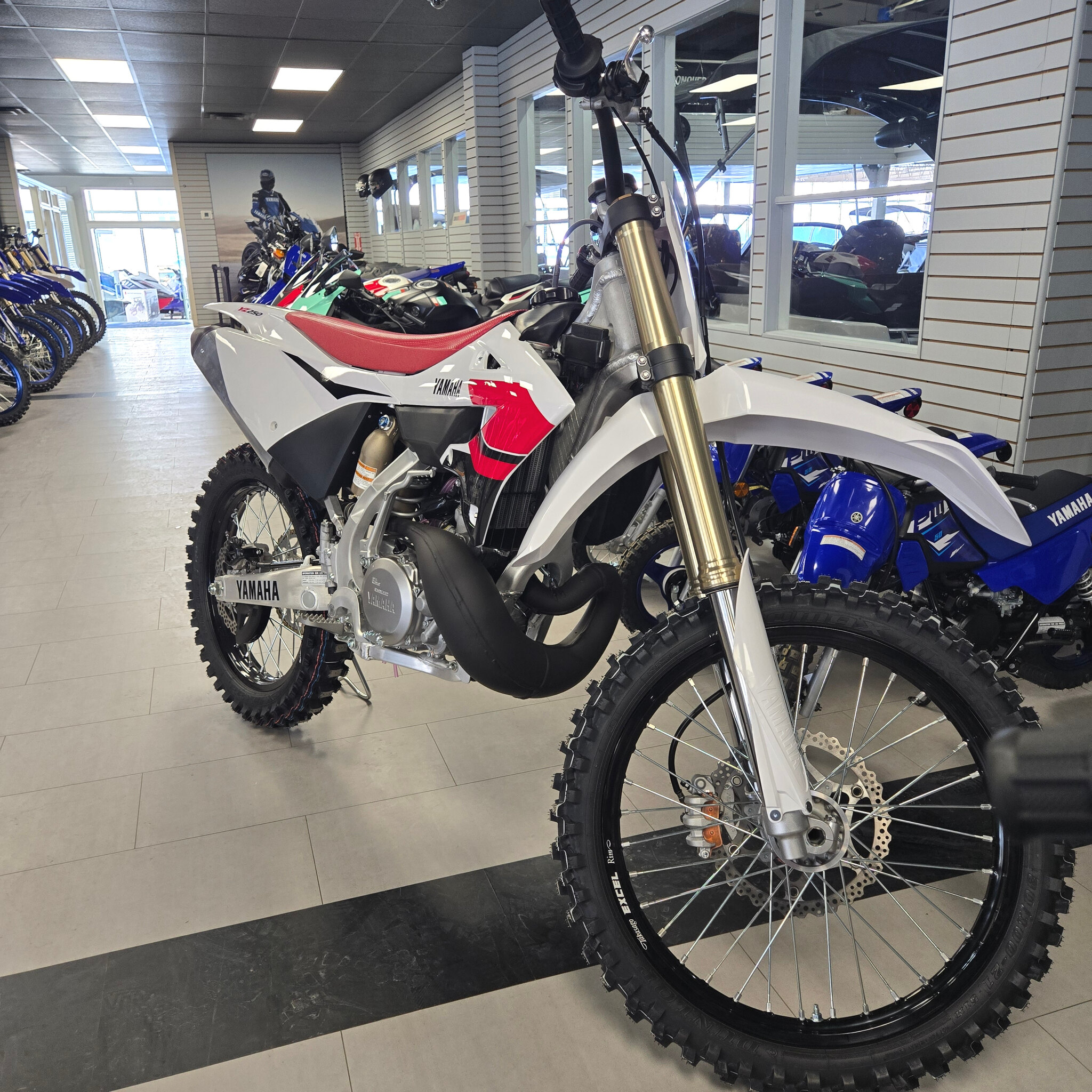 On the track or on the trail, the YZ250's exhilarating 250cc liquid-cooled engine provides an instant hit of power for holeshot-winning acceleration. It's industry-leading KYB® suspension offers outstanding handling, and the slim bodywork and flat seat ease rider movement when braking, accelerating and cornering.